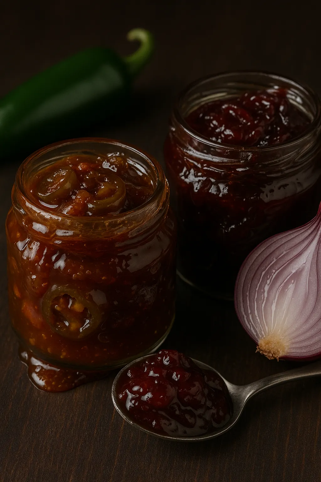 Un sabor audaz y ahumado que combina el picante del jalapeño con la dulzura de la cebolla caramelizada y el toque irresistible del tocino. Perfecta para acompañar quesos curados, hamburguesas gourmet, carnes a la parrilla o untada en pan artesanal.